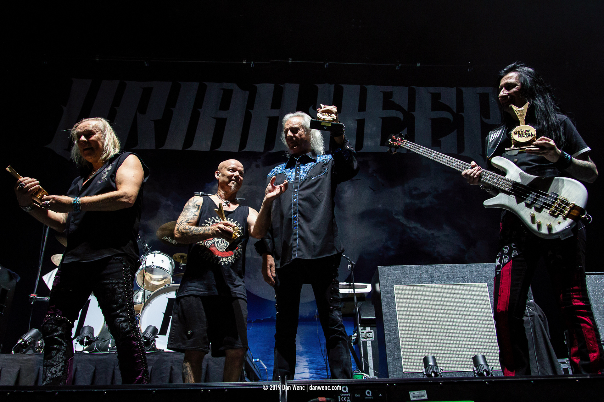 UNCASVILLE, Conn. - Mohegan Sun Casino arena was the place where rock legends Uriah Heep would receive their awards as 2019 inductees into the Heavy Metal Hall of Fame. Mid-way through the set the band would pause in between songs. Heavy Metal Hall of Fame Founder/CEO, Pat Gesualdo took the stage to say a few words about Uriah Heep before presenting the band with the awards. Gesualdo introducted Martin Popoff to the stage, a Canadian Music journalist and author, co founder of music magazine Brave Words & Bloody Knuckles, to say a few words of the band. Uriah Heep was the supporting act for Judas Priest this night.